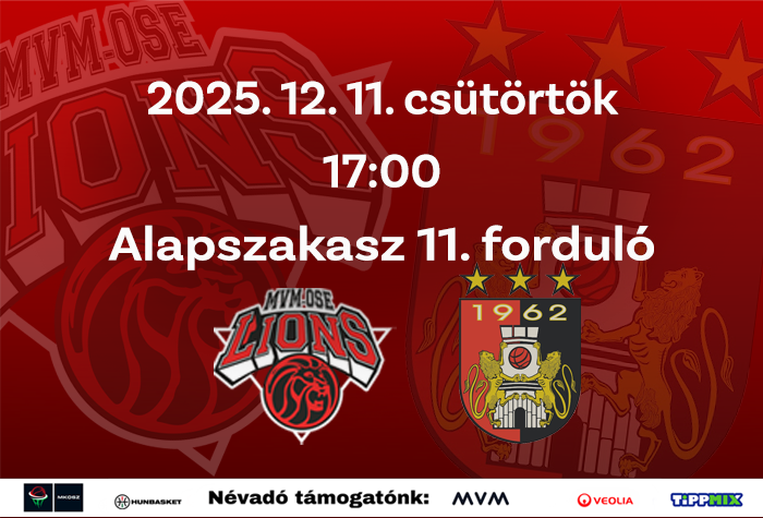 Ezen az oldalon a MVM-OSE Lions - Egis Körmend 2025-12-11 17:00:00-kor kezdődő mérkőzésre vásárolhat jegyet.